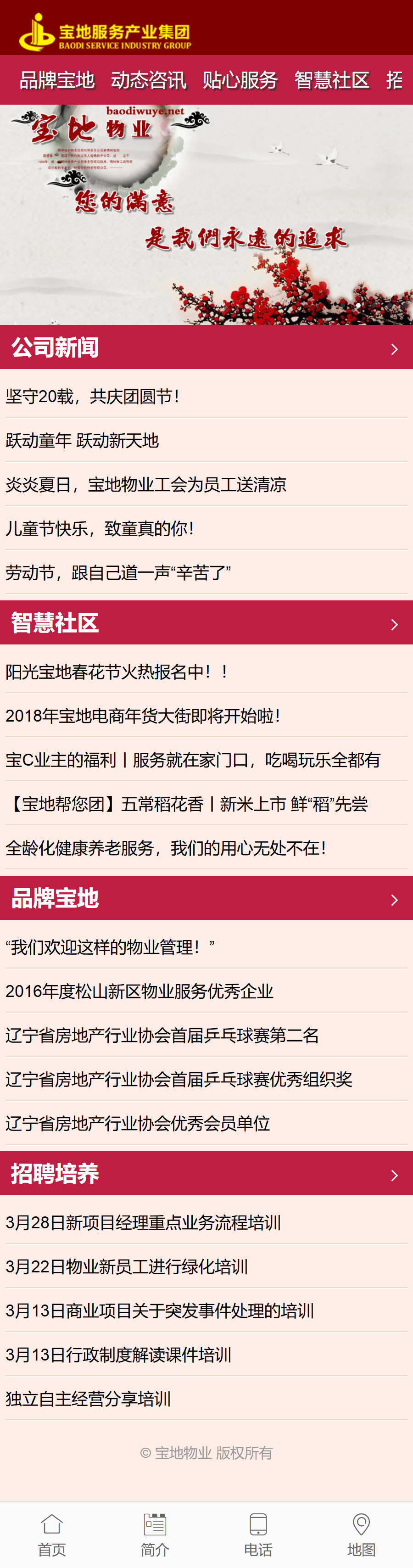錦州寶地物業(yè)服務(wù)有限責(zé)任公司在錦城規(guī)?;^(qū)發(fā)展建設(shè)中應(yīng)運(yùn)而生,其成立于1998年,如今的寶地物業(yè)已經(jīng)是錦州唯一一家擁有國家一級物業(yè)服務(wù)資質(zhì)的物管服務(wù)企業(yè)。公司踐行“造福萬家、創(chuàng)新發(fā)展、精進(jìn)成仁、自省自律、誠信為本”的五行文化理念,以“您的滿意是我們永遠(yuǎn)的追求”為服務(wù)宗旨,力求為業(yè)主打造高品質(zhì)的物業(yè)服務(wù)。隨著公司規(guī)模的不斷壯大,目前公司現(xiàn)有員工2500余人,承接項目100余個,其中涵蓋了普通住宅、辦公樓及商業(yè)綜合體項目等,總服務(wù)面積達(dá)到了1000余萬平方米,其中世紀(jì)花園小區(qū)、巴黎豪苑小區(qū)、東方庭院小區(qū)、寶地城小區(qū)、曼哈頓小區(qū)、東湖一號等多個小區(qū)獲得國家、省、市優(yōu)秀示范小區(qū)等榮譽(yù)稱號。